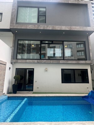 Excelente casa que cuenta con amplios espacios en su interior, 3 recámaras cada una con su walk-in closet, un estudio, sala, comedor, y un sótano ideal para adecuar como gimnasio o cuarto de juegos. En el exterior podrás encontrar una terraza equipada con asador y alberca La propiedad cuenta con ventanas duo-vent, 30 paneles solares, cisterna, tinaco, 8 minisplits y boiler de gas. Cochera techada para 4 autos con cámaras de circuito cerrado.