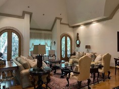 La propiedad cuenta con doble cochera con capacidad para 10 autos, paneles solares, rio natural para uso de riego, 3 cisternas, caseta de vigilante, portones eléctricos y minisplits en todas las áreas.