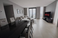 Departamento en Torre Dana situado en el piso 9 completamente amueblado y equipado de 157m2. El departamento cuenta con área social anexo a una terraza con increíbles vistas panorámicas, tres recámaras, con espacios amplios de closets, una cocina totalmente equipada y centro de lavado. Incluye 3 cajones de estacionamiento.